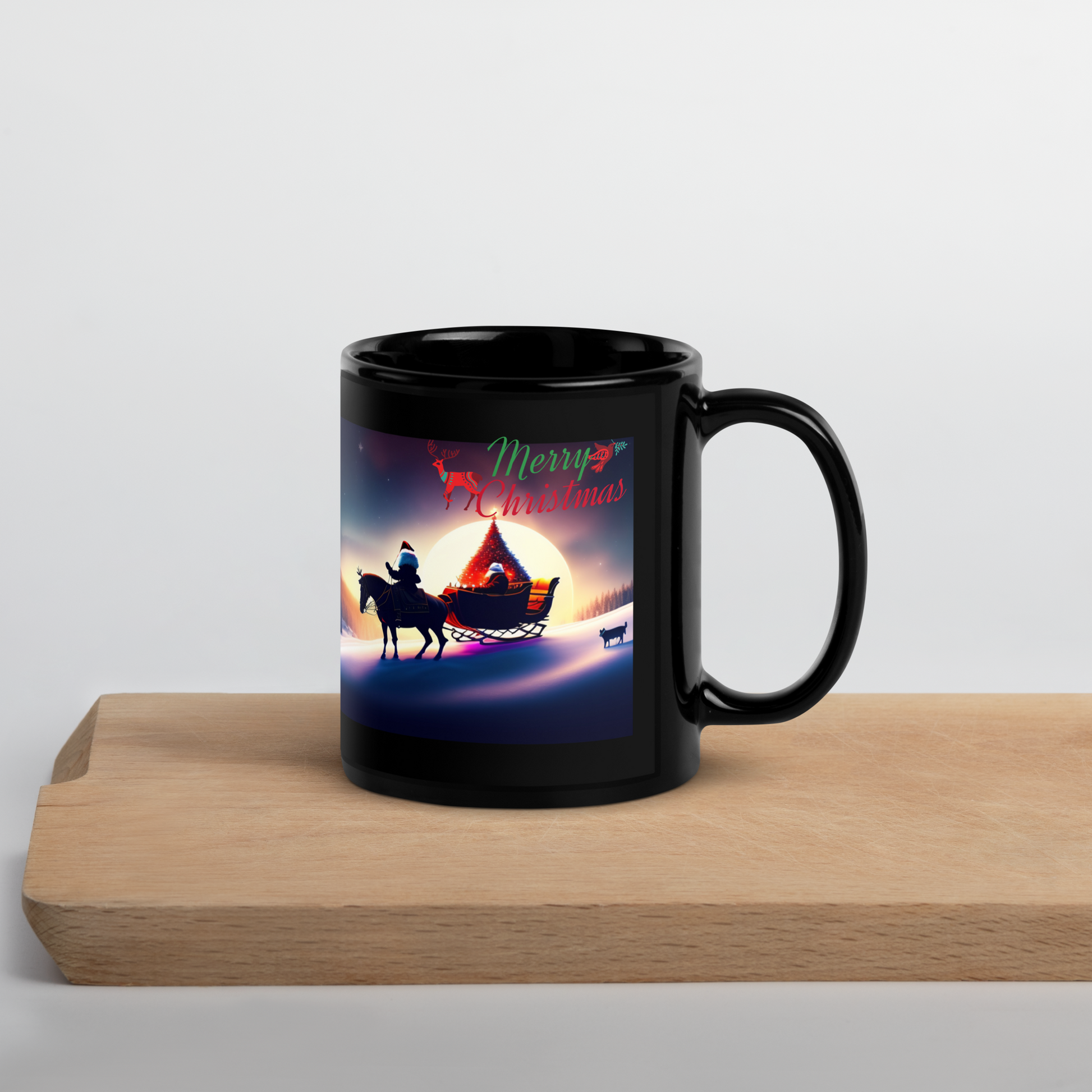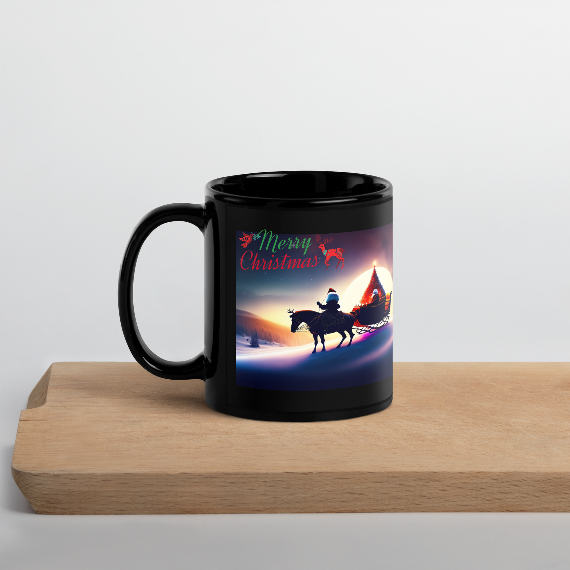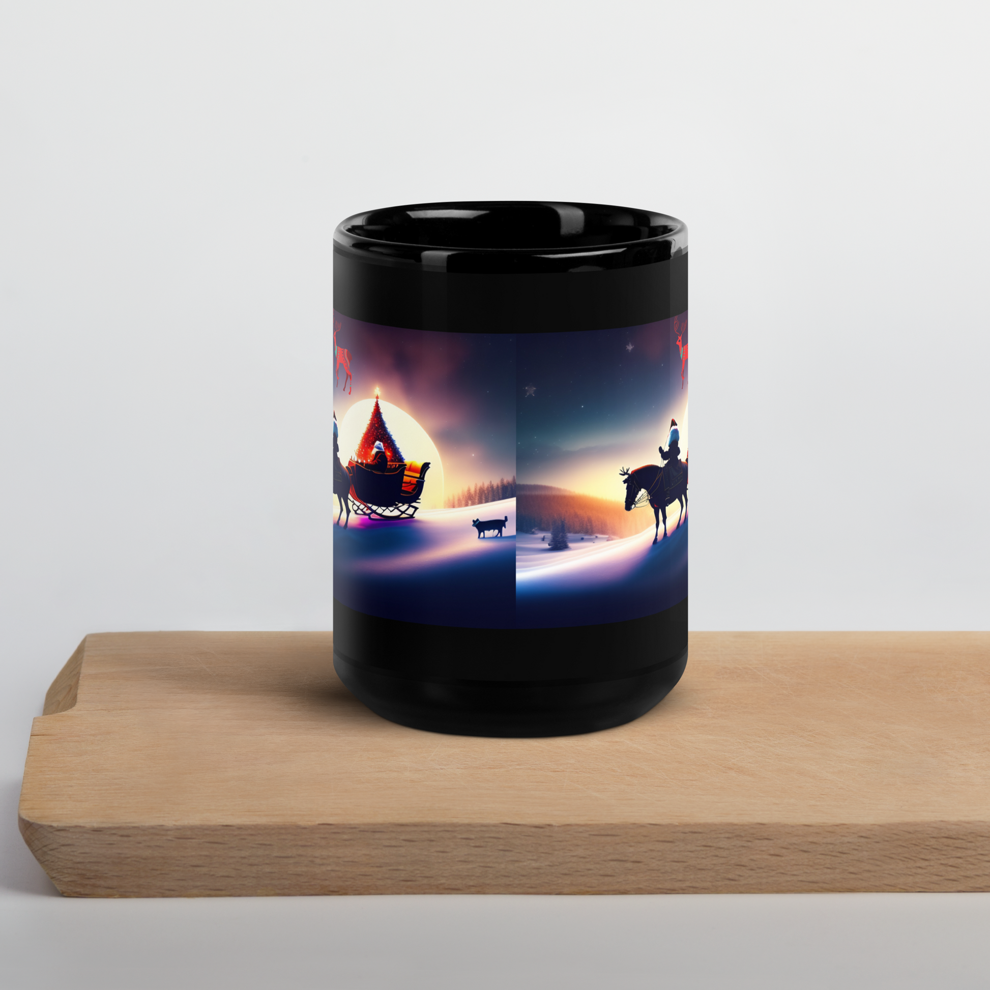 Santa's Sleigh Ride Holiday Mug (Black Glossy)