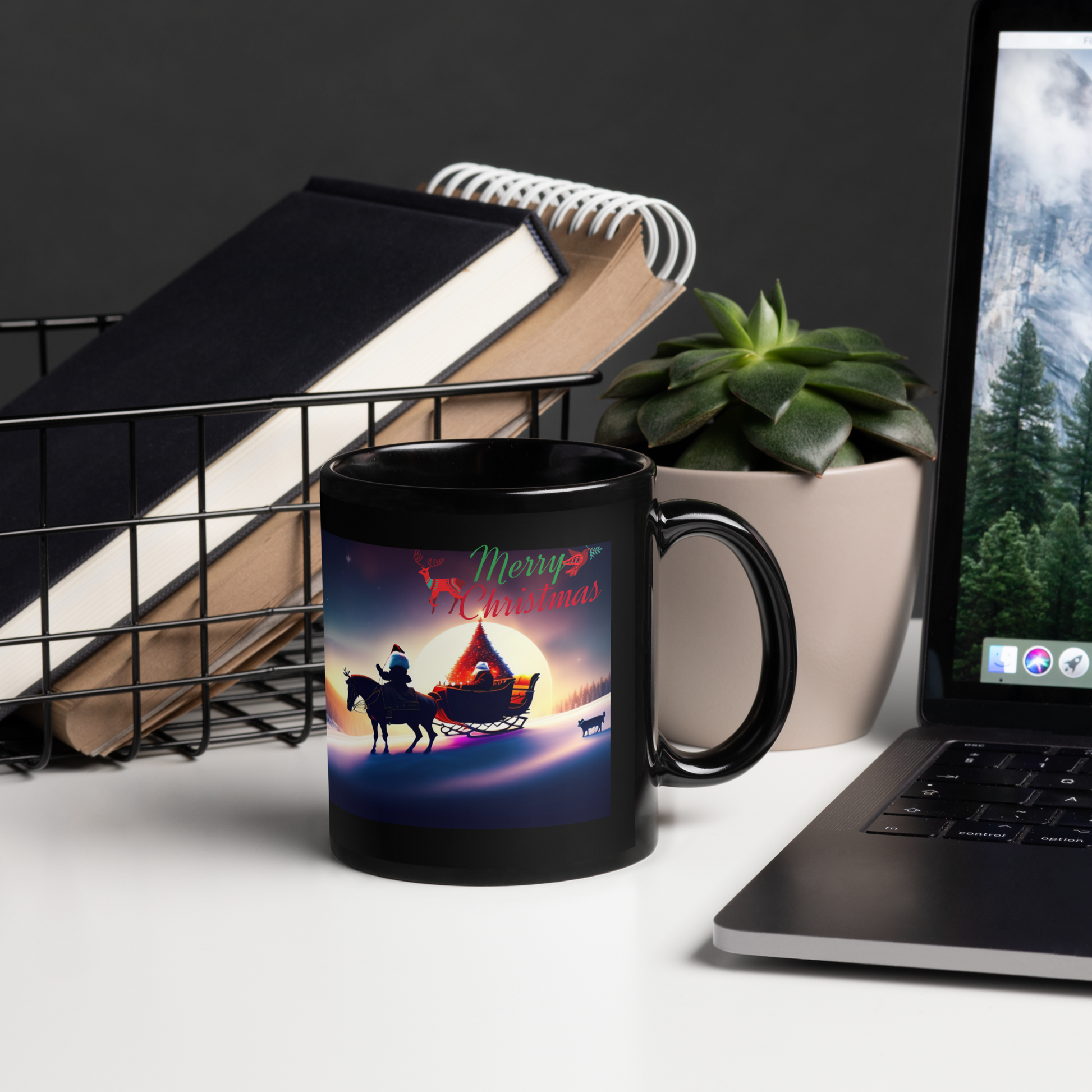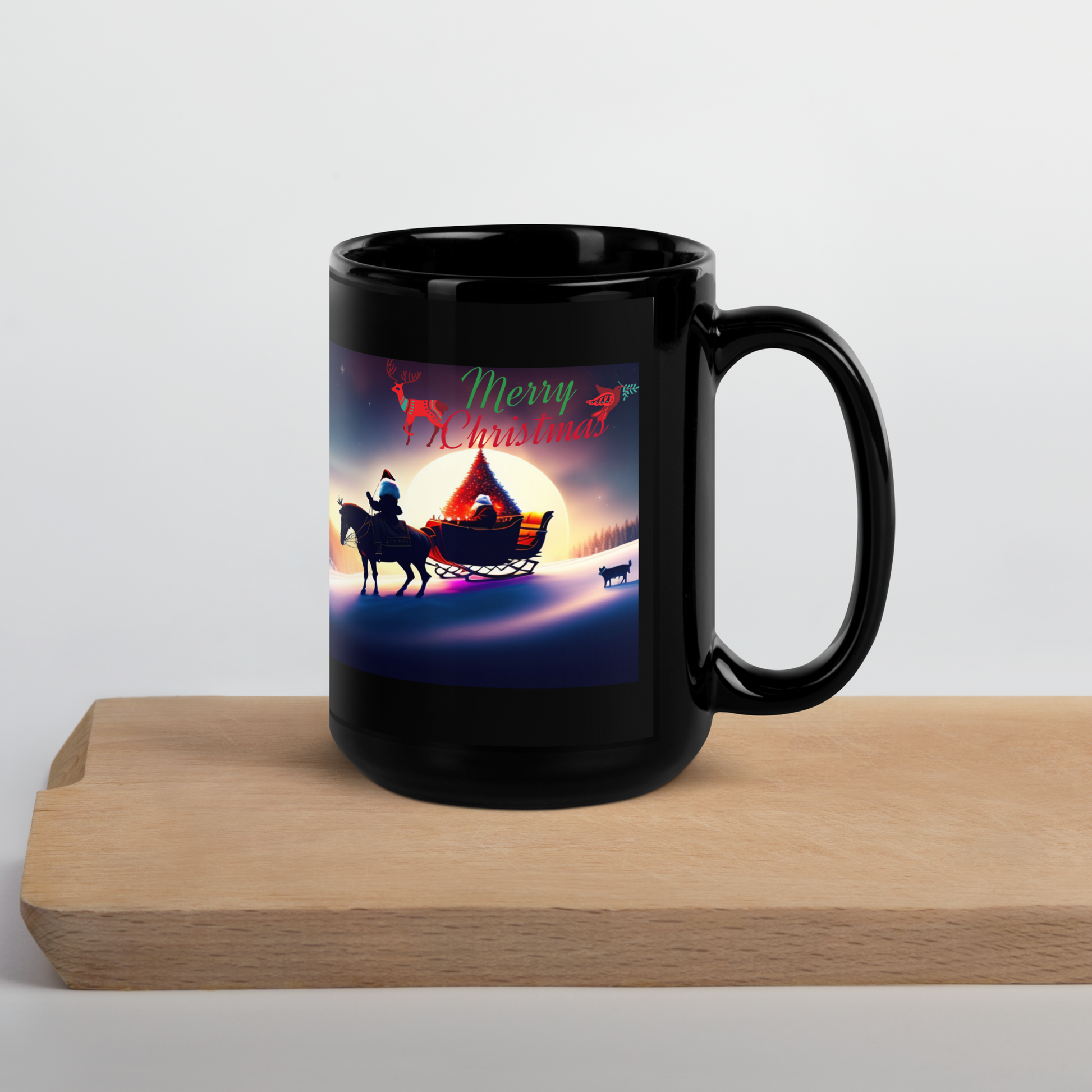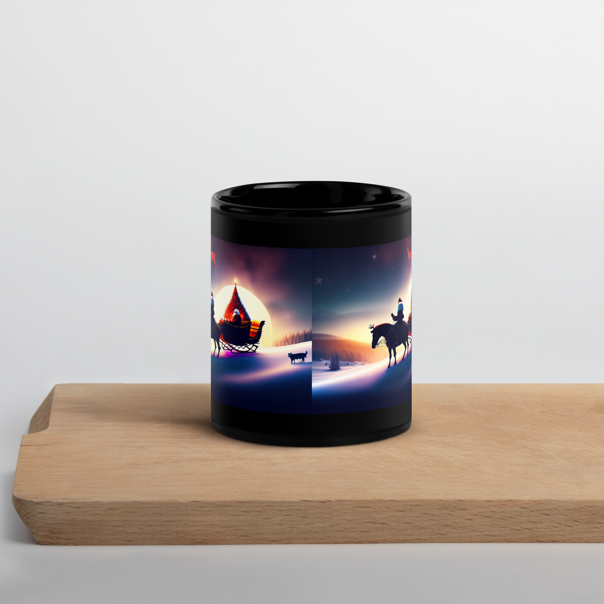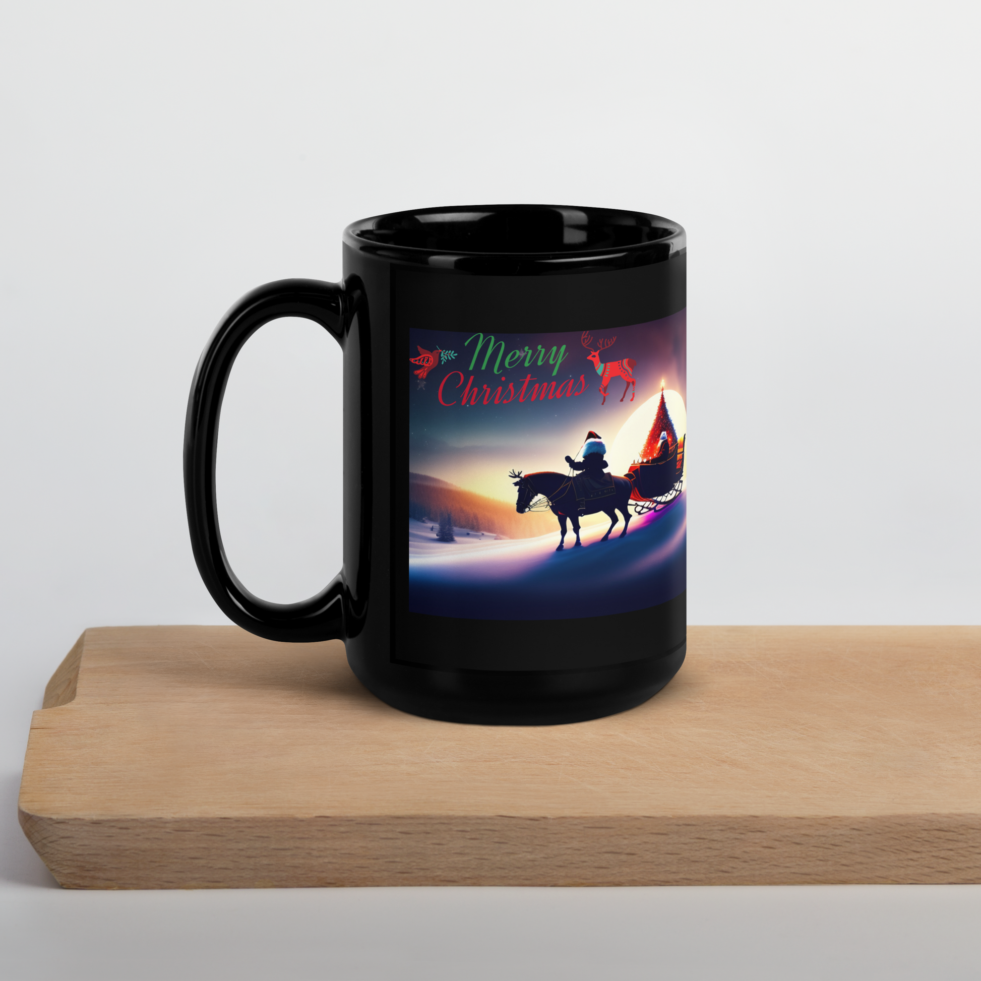 Santa's Sleigh Ride Holiday Mug (Black Glossy)